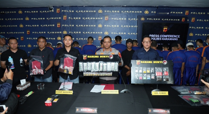 Kapolres Karawang AKBP Fiki Novian Ardiansyah menjelaskan Pelaku berinisial R.C. ditangkap sekitar pukul 07.00 WIB beserta puluhan bungkus narkoba siap edar dan peralatan produksi.
