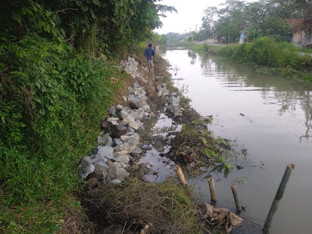 Program BBWS tersebut pembangunan tembok penahan tanah (TPT) saluran air irigasi panjang 25 m ke dalaman 1 m lebar bawah pondasi 50 cm dan lebar atas 30 cm.