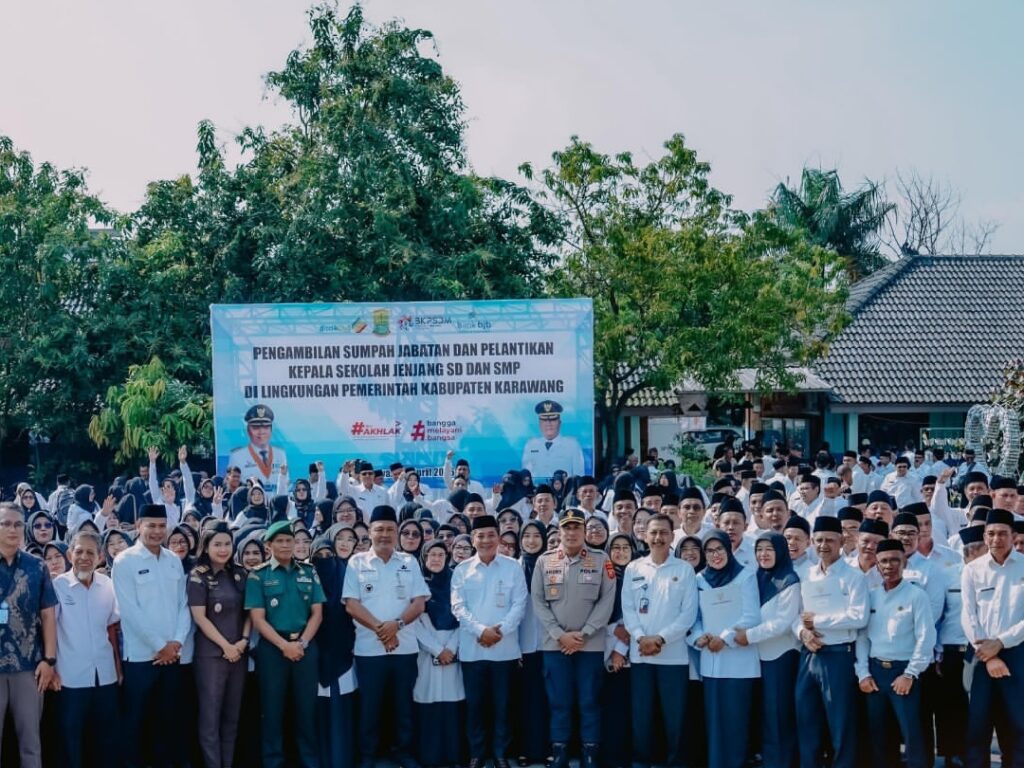 Bupati Karawang H. Aep Syaepuloh SE melantik dan mengukuhkan Kepala Sekolah jenjang Sekolah Dasar (SD) dan Sekolah Menengah Pertama (SMP). Bertempat di Lapangan SMPN 2 Telukjambe Timur pada Kamis (2/4/2026).