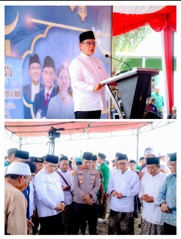 Karawang,Gelarnews.com – Wakil Menteri Agama Republik Indonesia, DR. KH. Romo R. Muhammad Syafi’i, SH., M.Hum., melakukan kunjungan kerja dan silaturahmi ke Yayasan Majelis Alhanafiyah Desa Segarjaya, Kecamatan Batujaya, Kabupaten Karawang, Kamis (21/8/2025). Kunjungan ini sekaligus menjadi momentum peletakan batu pertama pembangunan Masjid Raya Arridho yang berdiri di atas lahan seluas kurang lebih 3,8 hektar.